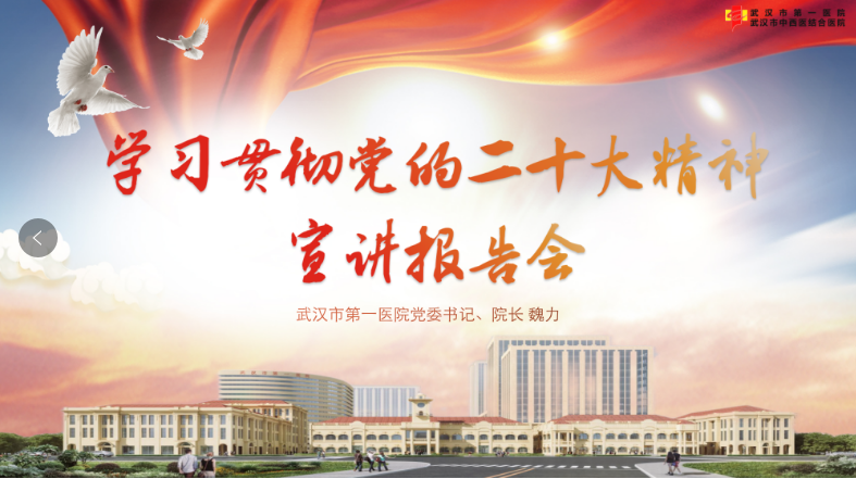 为深入学习贯彻党的二十大精神,切实把全院党员干部职工的思想和行动统一到党的二十大精神上来,根据市委和市卫生健康委工作部署,1月18日下午,武汉市第一医院举行学习贯彻党的二十大精神宣讲报告会,党委书记、院长魏力同志作宣讲报告。全体党总支、支部书记、中层干部200余人参会。