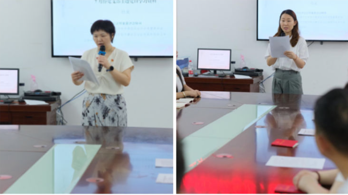 党员杨侠、张忱忱领学习近平总书记近期重要讲话精神。