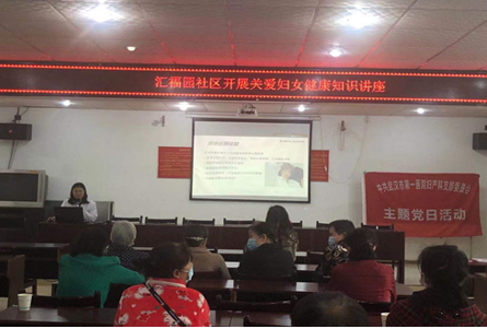 4月15日,妇产科党支部周海燕和罗菁两名党员赴汉阳区汇福园社区开展关爱妇女健康知识讲座,把健康送到基层。