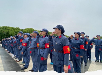在黄麻起义和鄂豫皖苏区纪念园,学员们身着光荣红军服,面向革命烈士纪念碑列队肃立,向纪念碑敬献花篮、三鞠躬。百余名党员医务工作者齐声高唱《义勇军进行曲》。在吴文莉同志的领誓下,大家面向党旗,举起右拳,重温入党誓词,掷地有声。