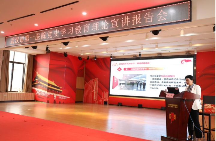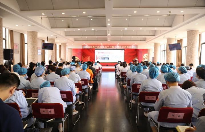 为推动党史学习教育走深走实,全面落实党中央、省委、市委、市卫健委关于开展党史学习教育的要求,2021年5月20日,市卫健委党史学习教育宣讲队成员、市纪委监委派驻市卫健委纪检监察组组长、市卫健委党委委员张萍同志专赴市第一医院作党史学习教育理论宣讲?;嵋橛墒械谝灰皆涸撼?、党委副书记魏力主持,医院党委班子成员、全体中层干部,“十百千”党建结对共建单位市普仁医院党员代表,党员下沉社区、宝善社区党员代表等200余人参加学习。