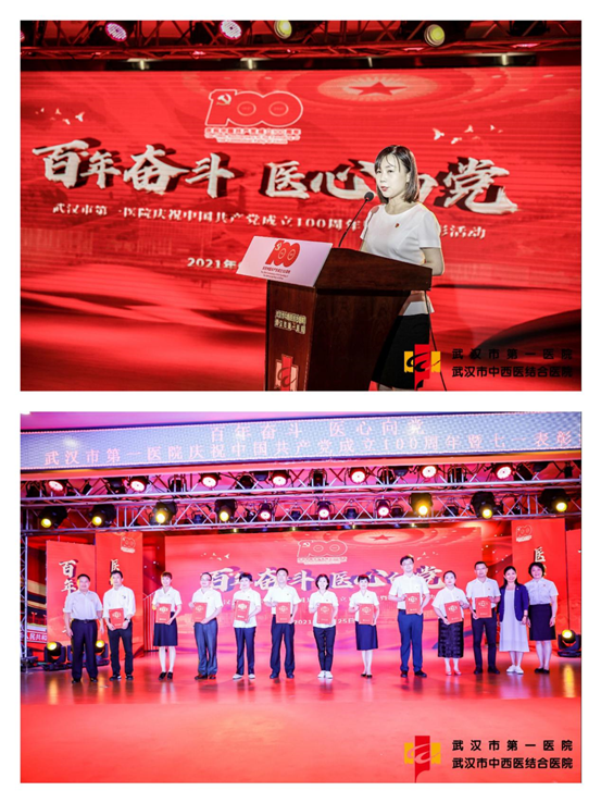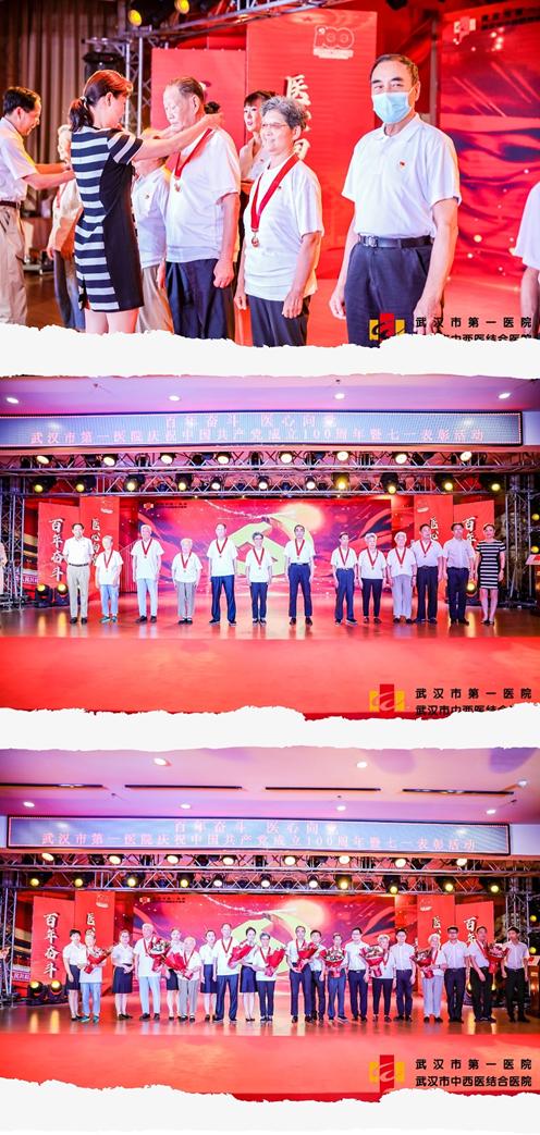 百年奋斗路,健康新征程!6月25日下午,医院庆祝中国共产党成立100周年暨“七一”表彰活动在医院学术报告厅隆重举行。湖北长江广电传媒集团党委委员、副总经理陈前,武汉市委组织部组织三处处长王翌,武汉市卫生健康委一级调研员罗时珍、财务处处长徐凌,武汉市纪委监委派驻武汉市卫生健康委纪检监察组办公室主任鲍艳丽,医院党建结对共建单位武汉市普仁医院、武汉天安医院党员代表,湖北长江广电传媒集团党员代表,下沉社区六角亭街宝善社区党员代表,市第一医院领导班子成员、全体中层干部、党员代表,共计200余人参加本次活动。