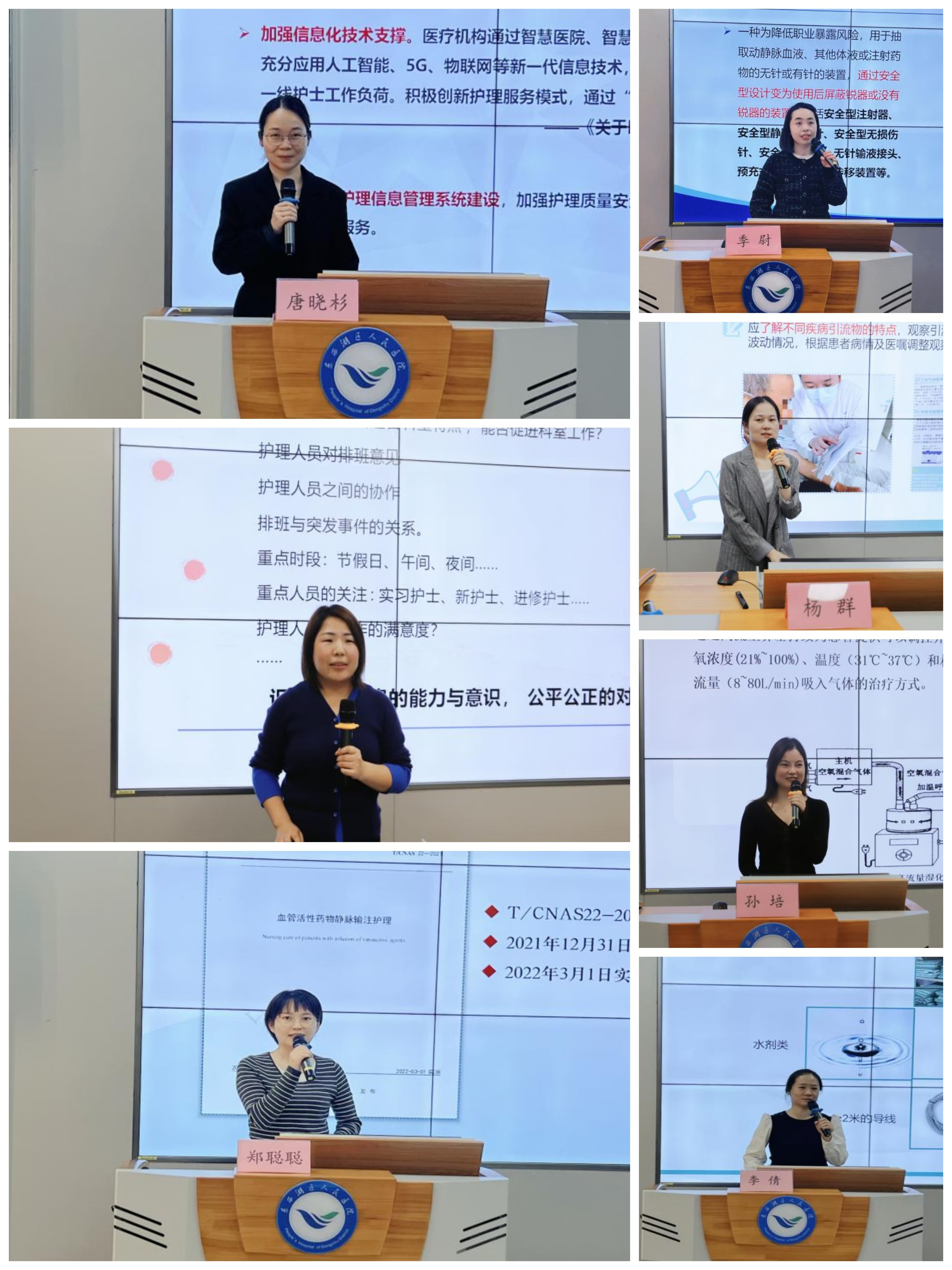 另外,武汉市东西湖区人民医院有七位护士长分别就护理团队标准及管理实践进行了精彩授课,亮点纷呈:《注射相关感染预防与控制团体标准解读》--季尉、《血管活性药物静脉输注护理团体标准解读》--郑聪聪、《医联体下区域消毒供应中心集中化管理实践》--李倩、《护理信息化实践与展望》--唐晓杉、《成人氧气吸入疗法护理团体标准解读》--孙培、《胸腔闭式引流护理团体标准解读》--杨群。