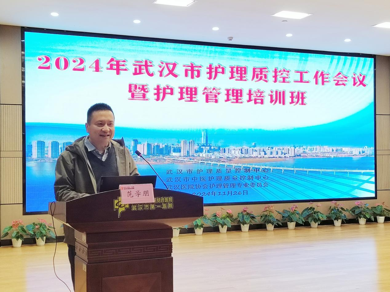 2024年11月26日,由武汉市护理质量控制中心、武汉市中医护理质量控制中心主办的“2024年武汉市护理质控大会暨护理管理培训班”在武汉市第一医院学术报告厅举办。本次活动的主题为“舵稳当奋楫风劲好扬帆”,旨在总结过去一年武汉市及各区级护理质控中心工作,分析进一步改善护理服务行动计划中期工作现状,探讨护理管理发展路径,共同推动全市护理事业高质量发展。武汉市第一医院副院长范学朋出席会议,全市115家医疗机构的近200名护理部主任和护理管理者参加了本次活动。开幕式由武汉市护理质量控制中心主任、武汉市中医护理质量控制中心主任、武汉医院协会护理管理专业委员会主委、武汉市第一医院护理部主任王莉主持。