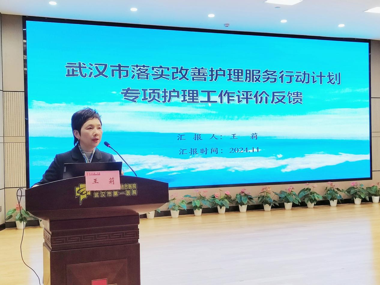 首先,王莉主任围绕武汉市改善护理服务行动计划专项护理工作调研作主题汇报,总结展示了全市47家医疗机构在落实改善护理服务行动计划专项护理工作的现状,分维度、分板块逐一梳理调研工作的共性问题、个性问题,有的放矢地提出对策建议,为全市全面改善护理服务提供参考。接着王主任从“组织体系建设、工作开展情况、工作成效、2025年工作计划”等四个方面详细介绍了武汉市护理质控工作情况。