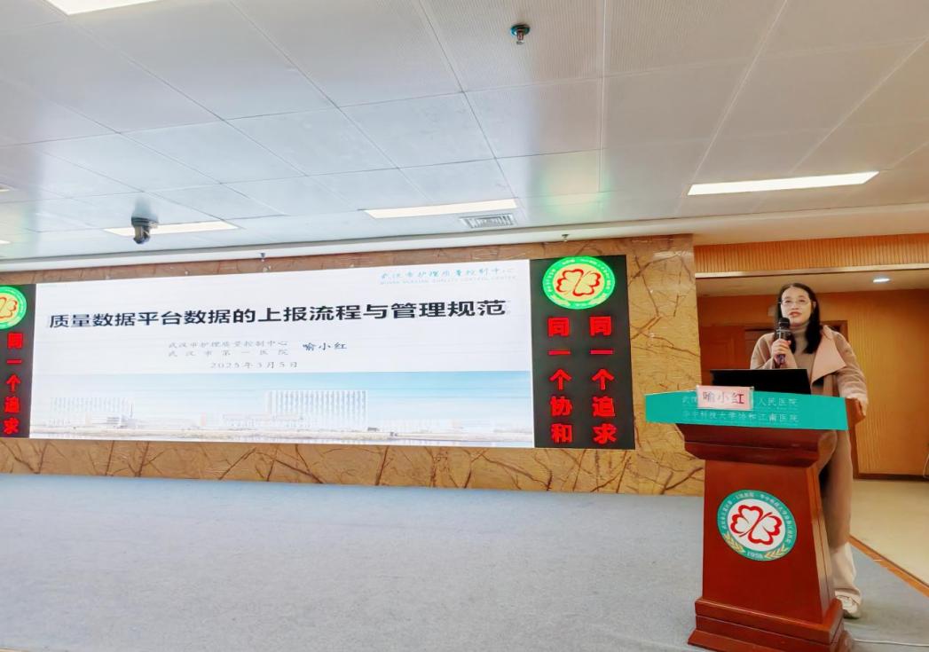 2025年3月5日下午,武汉市护理质控中心专家组赴江夏区护理质控中心开展关于国家省市级质控平台数据上报及数据管理工作专项指导,并举办2025年度江夏区护理质控中心首期护理质量管理培训班。本次培训班特邀武汉市护理质控中心专家武汉市第一医院神经外科护士长罗志华及武汉市护理质控中心数据管理员喻小红开展数据管理专题讲座,全区各级医疗机构护理部主任、护士长及骨干护士共300余人参加了培训。