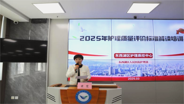 为落实《进一步改善护理服务行动计划(2023-2025))》,推动护理质量管理迈向规范化、标准化、科学化、同质化,2025年3月18日 - 19日,在武汉市护理质控中心指导下,由东西湖区护理质量控制中心组织的2025年护理质量评价标准解读培训在区人民医院成功举办。东西湖区护理质控中心专家组成员、全区医疗机构护理骨干200余人参会,会议由东西湖区护理质控中心秘书王英主持。