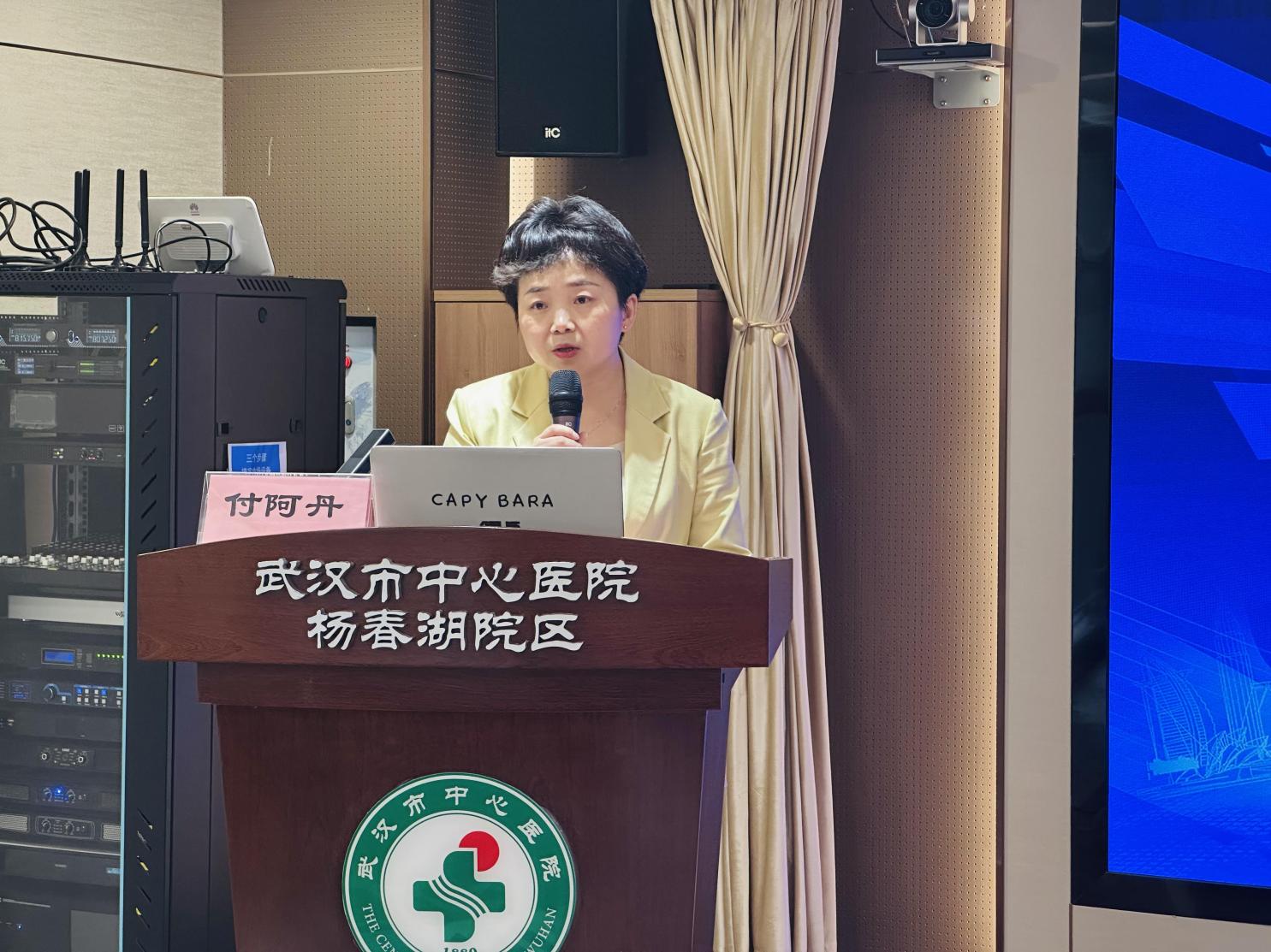 武汉市中心医院付阿丹副处长作为洪山区护理质控中心挂靠单位代表发表热情洋溢的欢迎词。她表示,护理质量是医疗安全的生命线,作为挂靠单位,我们始终将质控中心建设列为重点工作,持续加大资源投入,搭建交流平台,助力全区护理质量协同发展“以匠心守初心,以质量护生命”。