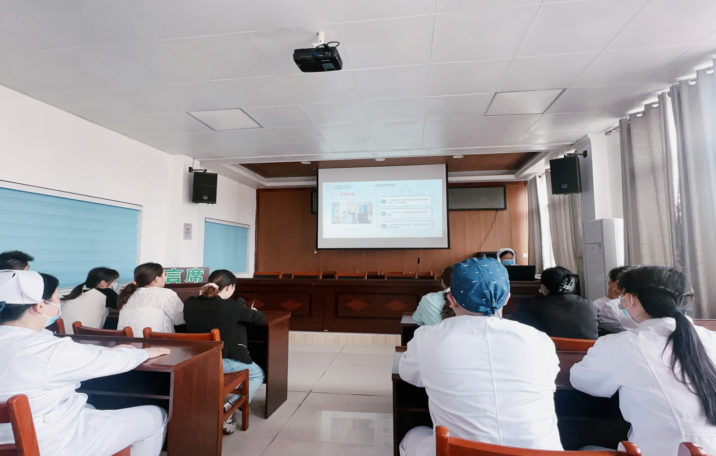 1. 专业讲座:曾学梅主任就《护理核心制度》结合案例解析,给潘塘卫生院近20余名医护人员进行了深入浅出的讲解,强化基层护理人员的职业安全意识及行为规范。