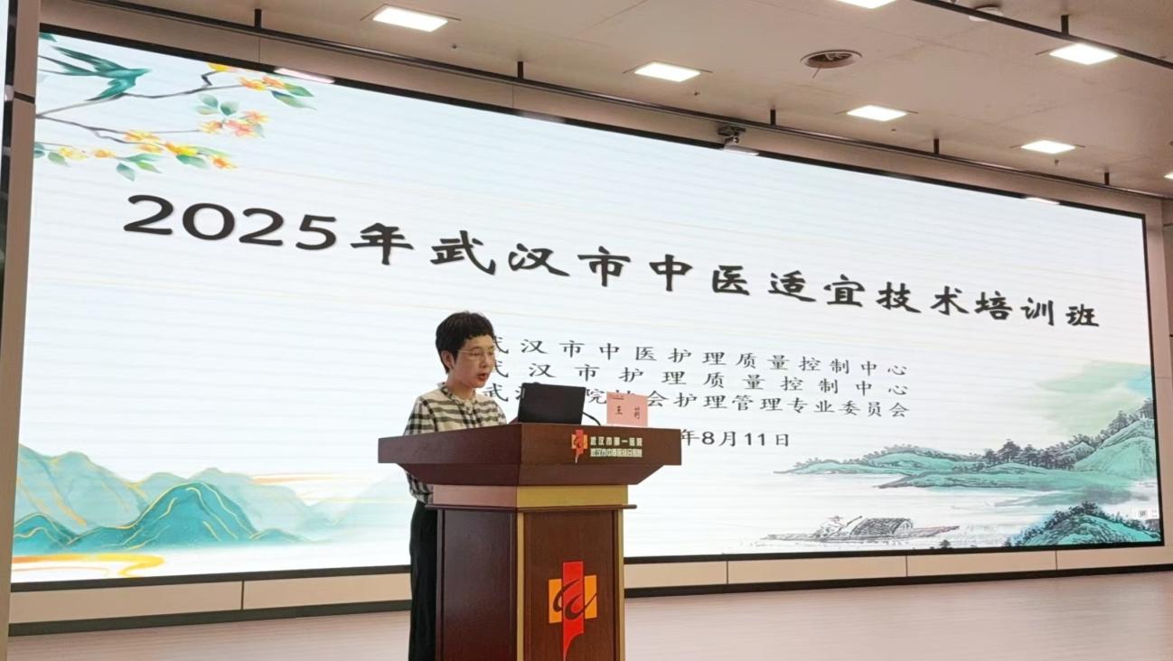 培训班在武汉市护理质量控制中心王莉主任的热情致辞中正式启动。王主任强调,我院始终遵循“中医有品牌、西医有特色,中西医结合显优势”的发展理念,指出中医护理是中医药服务体系的重要组成部分和特色优势所在。她希望,通过本次培训大家能争做中医护理的探索者、践行者和传播者,借助中医护理工作学术交流平台,学习中医护理技能,提升中医护理研究能力,探索中医护理技术的新应用场景、新服务模式,共同营造浓厚的中医护理学术氛围和实践环境,加强中医护理人才队伍的建设。
