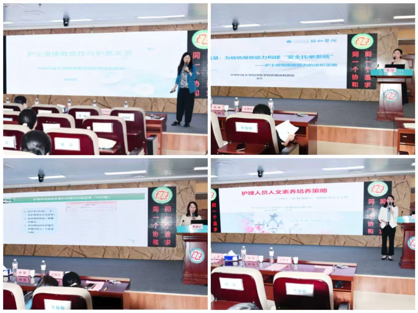 授课环节,华中科技大学同济医学院附属协和医院护理部副主任熊莉娟以《护士道德敏感性与护患关系》为主题,阐释道德敏感性内涵,强调提升道德觉察力对预防伦理冲突、增进患者信任的重要性?;锌萍即笱靡窖г焊绞粜鸵皆夯だ聿孔芑な砍そ鸹吩凇段∏楣鄄炷芰菇ò踩芯傧低场返淖ㄌ獗ǜ嬷校晗附彩隽吮曜蓟鞒?、风险评估工具、智能信息系统在全方位的病情监测体系中的应用?;锌萍即笱靡窖г焊绞粜鸵皆汉嗪觳┦恳浴痘だ砜蒲猩杓朴氪葱率导肺?,讲授护理科研设计方法及创新实践案例,启发护理人员从日常工作中发现研究切入点?;锌萍即笱靡窖г焊绞粜鸵皆耗诜置诳苹な砍ね跛窒砹恕痘だ砣嗽比宋乃匮嘤呗浴?,阐述人文素养培养策略,提供实践路径。