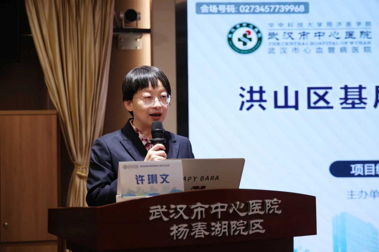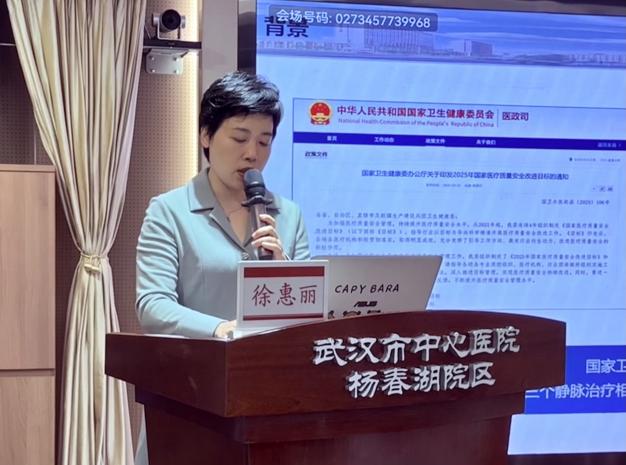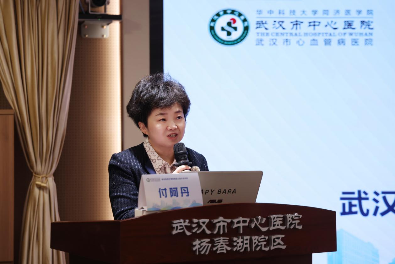 随后,武汉市中心医院护理部主任副处长付阿丹致欢迎词,她强调了护理管理在医院发展中的核心作用,更加并表示我院作为洪山区护理质控中心挂靠单位将不遗余力,努力作为,持续给予技术支持,以更高的站位、更实的举措、更强的担当,为共同推动区域护理质量同质化发展贡献力量。