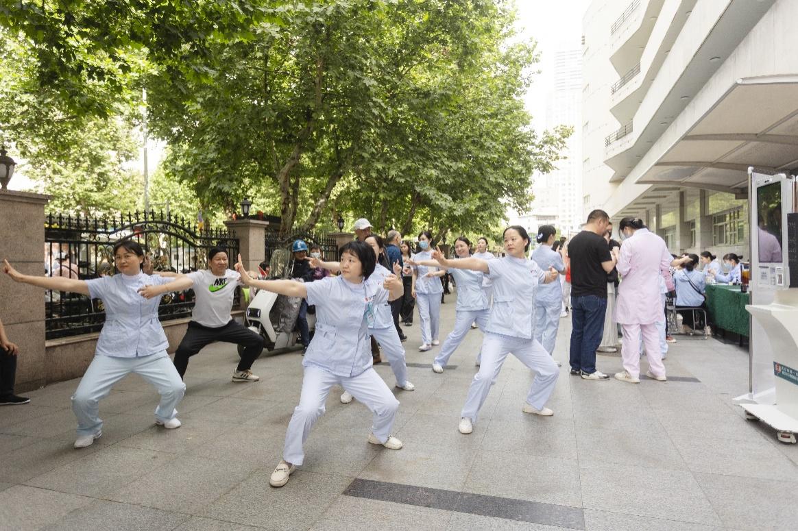 为让现场群众沉浸式体验中医药文化,感受中国千年智慧,医院持续深化“中医药+”模式。在义诊区一隅,杨侠与陈蔚两位护士长带领市民进行“八段锦”基本动作示范教学和互动体验推广,切实将中医药文化成为可感知、可参与、可传承的健康文化。