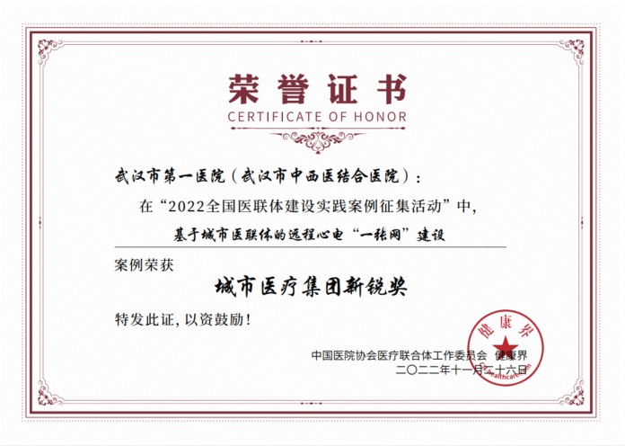 2022年11月26日,荣获中国医院协会《城市医疗集团新锐奖》