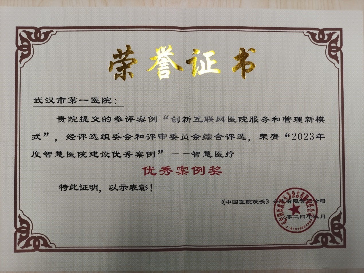 2024年3月,荣获第六届智慧医院建设与发展大会《2023年度智慧医院建设优秀案例奖》