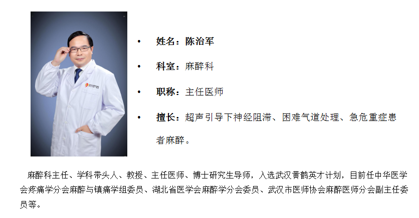 麻醉专业目前为湖北省和武汉市的临床重点专科??剖蚁?/span>有手术间36间(利济北路院区22间,盘龙城院区14间),总复苏室床位21张,常规开展妇产科、泌尿外科、肝胆外科、胃肠外科、甲乳外科、骨科、神经外科、心胸外科、眼科、耳鼻喉科等手术麻醉,此外还承担神经外科、神经内科、心内科等介入手术麻醉。科室同时在全院范围内广泛开展无痛诊疗业务,包括:无痛胃肠镜、无痛纤支镜、无痛分娩、无痛人流、无痛泌外、无痛ERCP、无痛皮肤外科、无痛光动力治疗等。