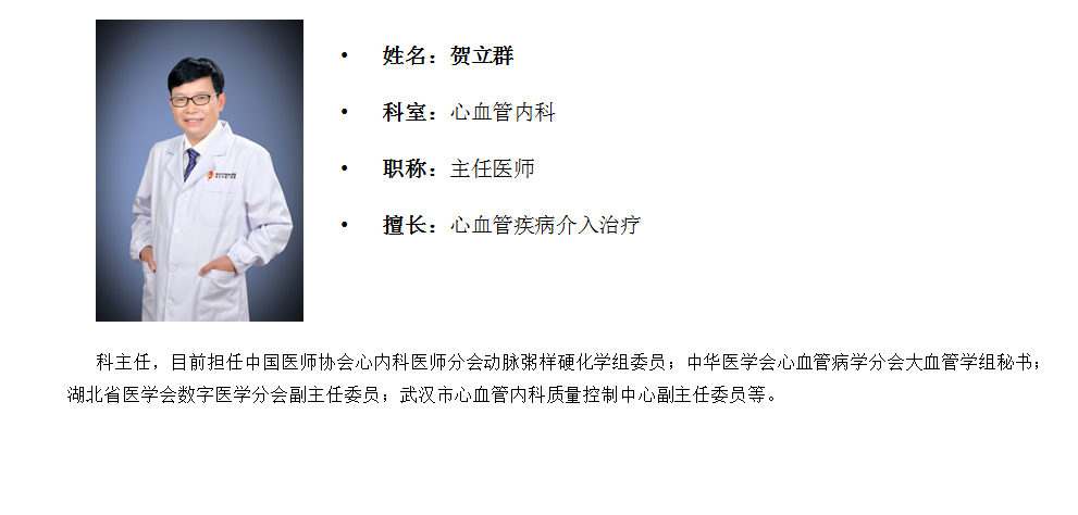 心内科学科带头人—贺立群主任,发表科研论文52篇,参与8部心血管专著的编写;有多项学会任职;并以主要研究者身份,参与两项国家级课题(多中心临床随机对照研究),分别是:复旦大学附属中山医院葛均波院士牵头的《冠状动脉药物支架术后比较吲哚布芬与阿司匹林的随机对照研究》(OPTION研究),以及首都医科大学附属北京安贞医院聂绍平教授牵头的《一项评价急性 ST 段抬高型心肌梗死术后常规抗凝临床获益的大规模、多中心、随机、安慰剂对照研究》(RIGHT研究);参与国家973项目、湖北省自然基金等研究项目;并主持武汉市科研项目。