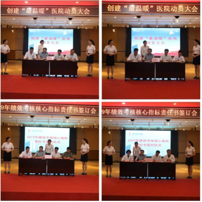 皮肤科陈柳青主任、超声影像科余晓梅主任、护理部王莉主任作为代表分别表态发言;三位主任在发言中表示,将结合科室特点,坚持“以患者为中心”的服务理念,将“温暖”理念转化为“温暖”行动,不断提升患者就医感受。随后,甲乳外科赵建国主任、药学部胡松主任、门诊办公室荆萍主任和财务处田家洪主任作为临床科室和职能部门代表与党委王卫民书记、魏力院长签订了《创建“最温暖”医院承诺书》。