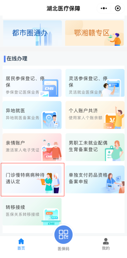 1.线上申请:微信或支付宝搜索“湖北医疗保障”小程序,下拉至在线办理??椋慊?b>“门诊慢特病病种待遇认定”,可选择为自己办理或为他人办理。