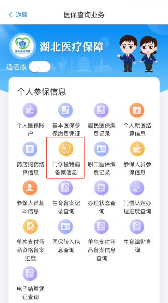 患者通过鉴定后,可通过“湖北医疗保障”小程序查询“门诊慢特病备案信息”,持此凭证前往医院挂号窗口登记身份后使用。