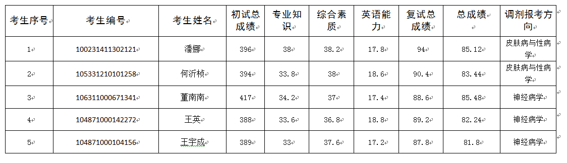 华中科技大学同济医学院附属武汉中西医结合医院2021年硕士研究生调剂复试成绩公示