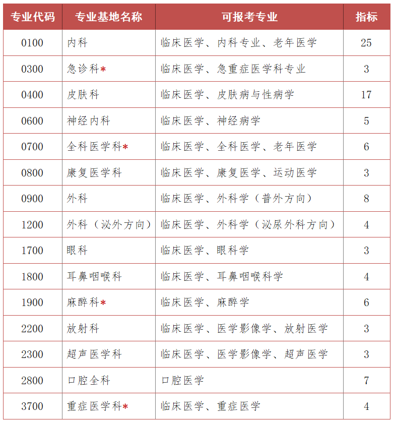 武汉市第一医院2025年拟对外招生计划名额(含专硕)如下: