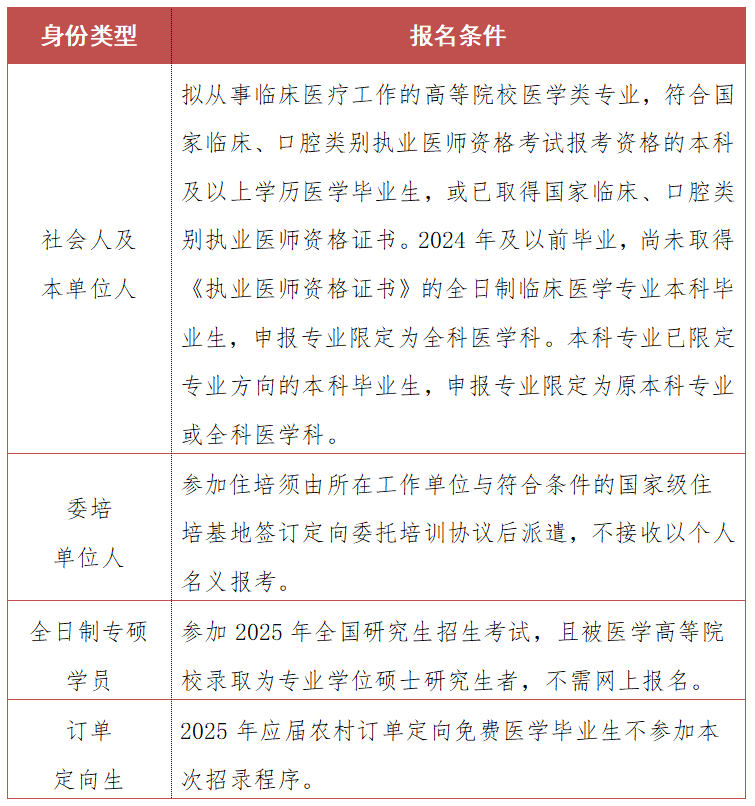 本次为预报名,主要为正式招录做好前期准备。以下报名条件为2024年版,实际以我院2025年发布的住培正式招录简章为准。